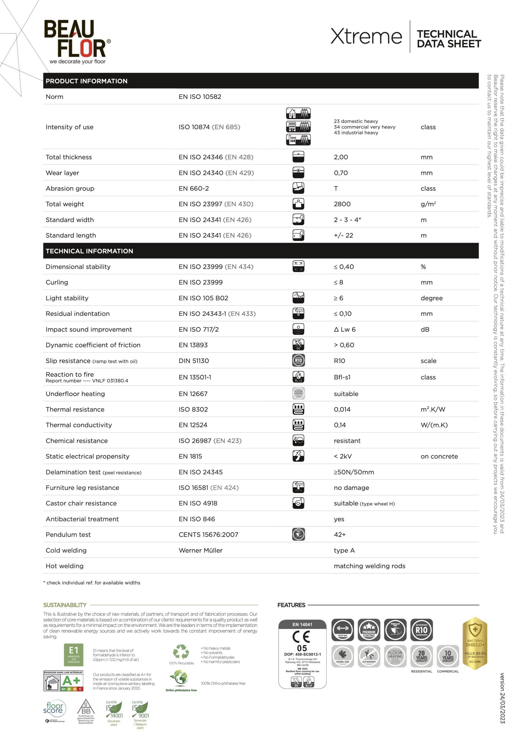 Основні характеристики Гетерогенний лінолеум Beauflor Xtreme
